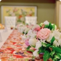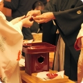 花の香りでまわりを清め、新郎新婦の幸せを守るという意味を持つ伝統的な演出。